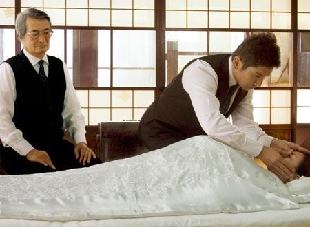 ――求人広告を手にNKエージェントを訪れた主人公・大悟(本木雅弘)は、社長の佐々木(山?努)から思いもよらない業務内容を告げられる。それは【納棺(のうかん)】、遺体を棺に納める仕事だった。戸惑いながらも、妻の美香(広末涼子)には冠婚葬祭関係=結婚式場の仕事と偽り、納棺師(のうかんし)の見習いとして働き出す大悟。美人だと思ったらニューハーフだった青年、幼い娘を残して亡くなった母親、沢山のキスマークで送り出される大往生のおじいちゃん・・・そこには、さまざまな境遇のお別れが待っていた!